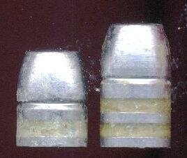 Left -Unfired handload. Notice the case is wasp-waisted.