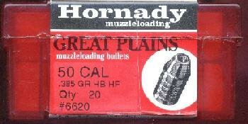 The first bullets I used were these Hornady Great Plains bullets. They're soft lead with a hollow base intended for muzzle loaders.