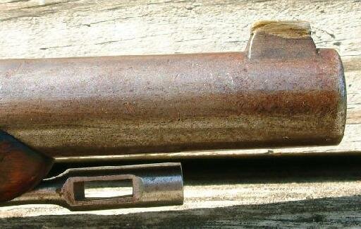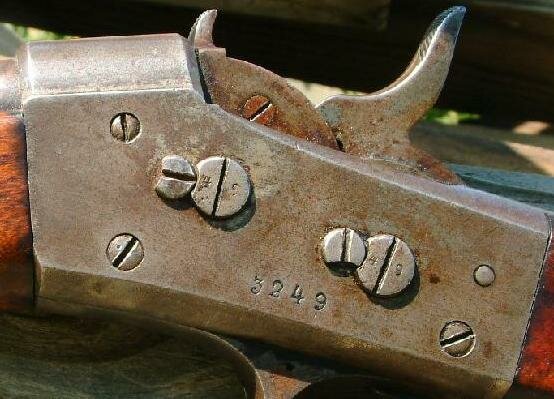 The milled portion of the barrel to the left of the rear sight was where the older musket sight screw holes