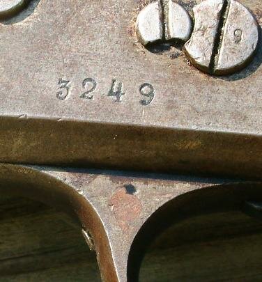 The hammer & breechblock pins have the last two digits of the serial number stamped on them.