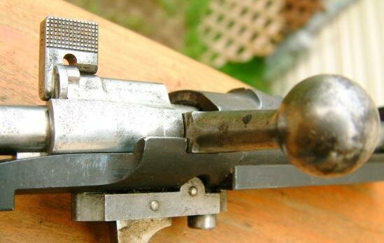The safety lever cams the cocking piece away from the sear and blocks its forward movement. In many rifles the safety is difficult or impossible to engage. This can sometimes be adjusted by stoning the camming angle to allow it to pick up the cocking piece. The Mauser system safety is about as perfect a safety as can be devised. Initially utilized via a patent by Paul Mauser on the Infantry Gewehr 1871 it has remained virtually unchanged throughout the entire series of Mauser military rifles. Personally, I dislike those sporting safeties that act on the trigger, as the cocking piece is still engaged with the sear and accidental discharge can occur.