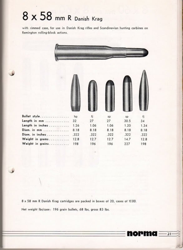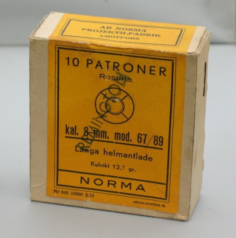 So, let me begin with the Norma factory documents that provide the most information and which I hope provide the most accurate historical understanding of the 20th century commercial/civilian 8x58RD cartridges. Commercial cartridges were also loaded by Dansk Ammunitionsfabrik A/S in Otterup, Denmark, and DWM and RWS in Germany, but I have had little success in gathering primary documentation on those companies loadings. 8x58RD also appears to have been loaded by Remington late in World War I, but I have as yet found documentation for that ammunition. There may have well been other commercial ammunition makers in Sweden, Norway, or other countries that produced 8x58RD, but there have been no examples I have seen as yet.