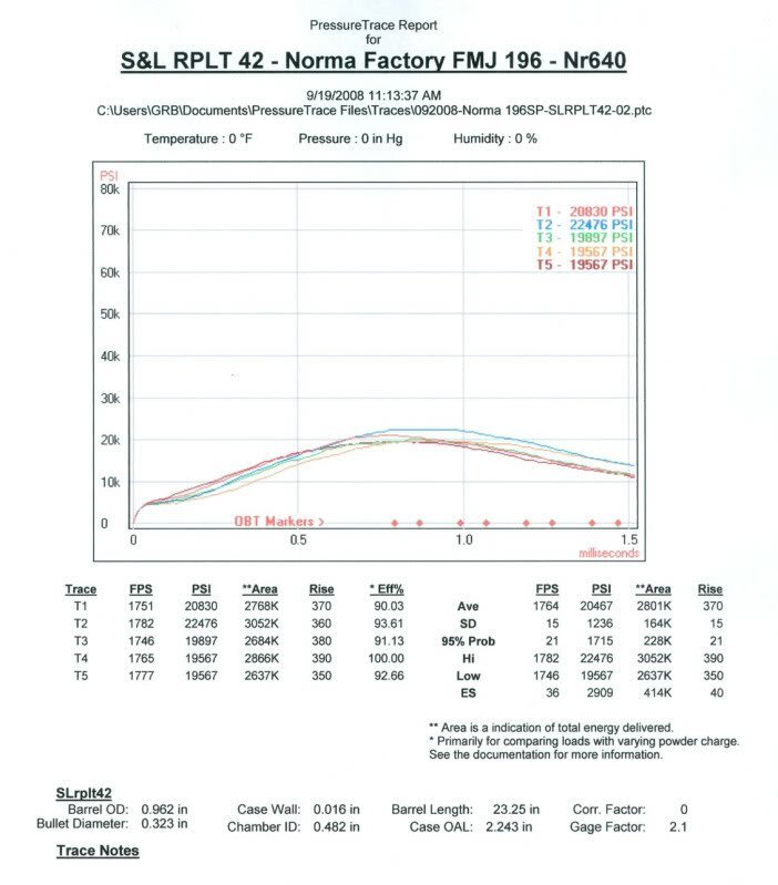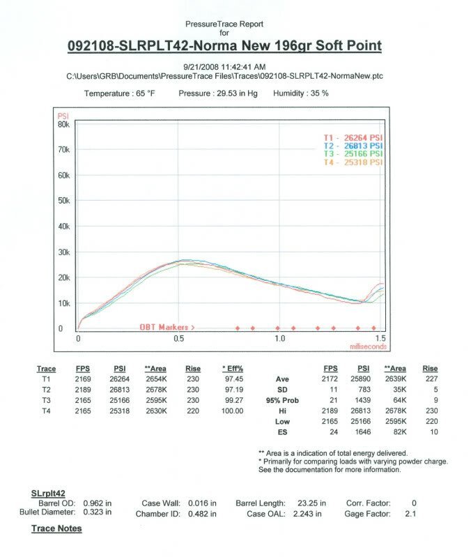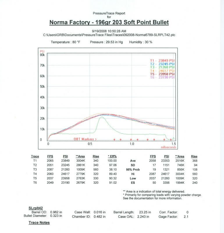 Third, my testing of the pressures generated by original Norma factory ammunition show PSI readings ranging from 19,567-26,813 PSI, and shot-string pressure averages ranging from 20,467-25,890 PSI.