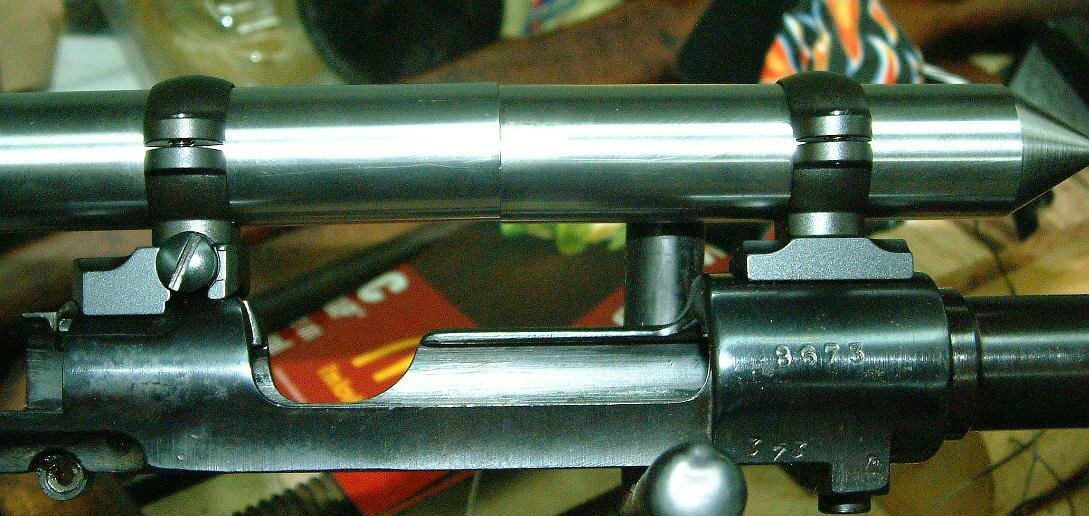 I drilled and tapped the receiver for Leupold bases & rings. You can see here that the rear bridge base is pointed up just a bit.