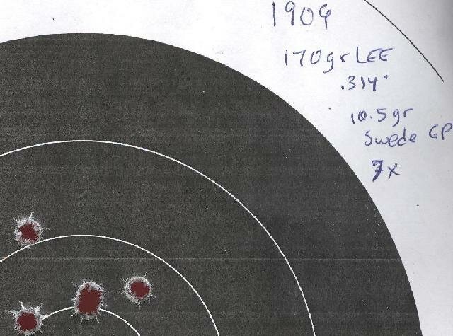 The 1909 didn't do quite as well as the 1891 but I'll wait until I can put a different scope on it and shoot it some more. It also seemed to prefer the .314" cast bullet.