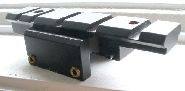 For expedience I used a NcStar rail for the Marlin rifle as it has a flat base and is drilled for mounting holes. The slot configuration is in the mil-std-1913 instead of the Weaver slot spacing. At 4 3/4" long its ideal for this type of application.