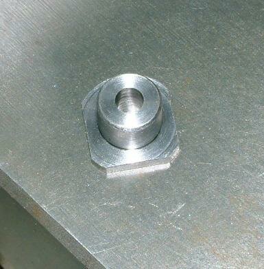Nov.6, '09 Note - This top hat anchor is now being made from 1045 carbon steel. I chose this material in case bending of the .038" flange becomes an issue. The 1045 can be heat treated fairly easy with a small torch and a water quench followed by 1 hour in a 500 degree oven and water quench to temper. It won't bend again.