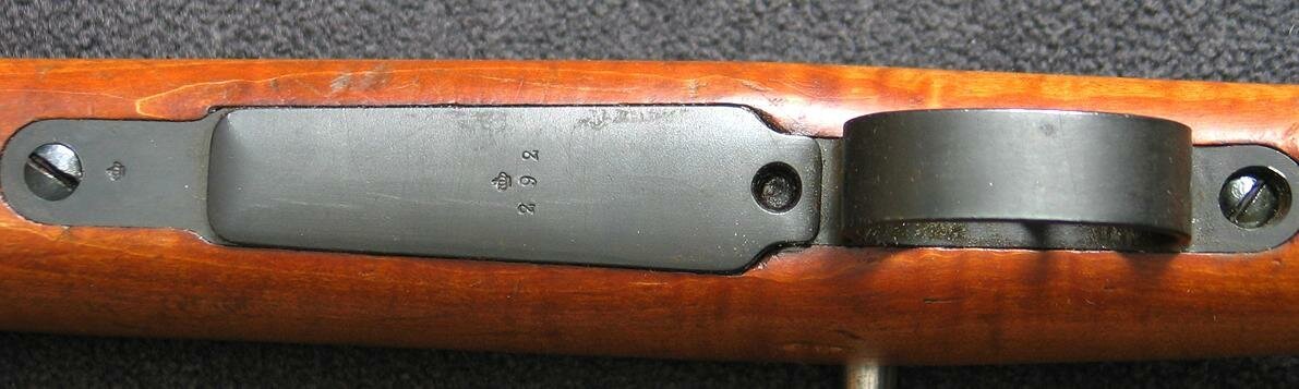 The barrel is marked for Carlsborg army workshop (now Karlsborg). There is a crown/CB cartouche on the wrist. The second little thing is that "flat" on the barrel. That was caused by a barrel vise when the new barrel was installed. We have noted a minority of m/96 with this kind of mark on the barrel shank. We don't have enough data to come to any conclusions about it. At some point it may be traceable to a specific army workshop.