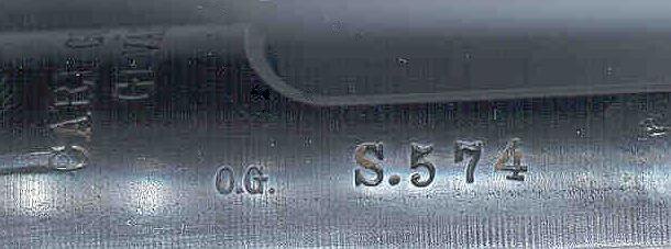 View of receiver side-rail shows inspector O.G. and unique serial number range, S.895. Serial numbers purportedly ran from 1 to 900,